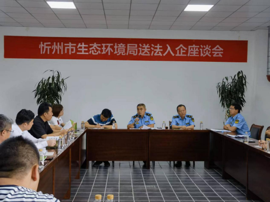 座谈会上,首先由企业代表分析阐述了日常生产中产污特点和污染防治设施运行情况,并提出部分环境行政处罚的相关问题;然后,市执法队庞俊平队长对企业提出的问题一一作答,指导企业规范污染防治工作,并结合监督帮扶,引用案例,对可能涉及的环境违法问题,参照《山西省生态环境系统行政处罚自由裁量基准(试行)》进行了讲解;最后,市执法队执法人员重点向企业解读了《行政处罚法》、《中华人民共和国大气污染防治法》、《中华人民共和国噪声污染防治法》等法律法规。同时,向企业负责人、员工发放了宣传手册,共发放宣传手册40余份。